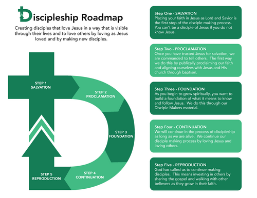 At Farmstead Baptist Church, it is our goal to Expand God's Kingdom One Life at a Time. We want to fulfill the mission God has given all believers by making disciples of all nations, baptizing them in the name of the Father and of the Son and of the Holy Spirit, teaching them to observe all I [Jesus Christ] has commanded you. As we strive to complete this call, this is the roadmap we will follow. The goal of this Discipleship Roadmap is simply to give us direction and to help equip us to do what God has called us to do. On this site, you will find resources that will help you build a foundation of faith (Disciple Makers) and tools to help you as you study God's word. Our goal is to strengthen believers and to give them the resources to be actively making disciples.